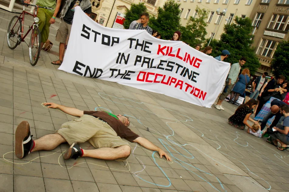 Na demonstraci tak zaznělo, že je třeba odmítnout náboženské interpretace celého konfliktu, neboť ty složí pouze k tomu, aby alespoň částečně smyly krev z rukou izraelské armády. Naopak je třeba zůstat konzistentní a upozorňovat na okupační daleko spíše než válečný charakter konfliktu.